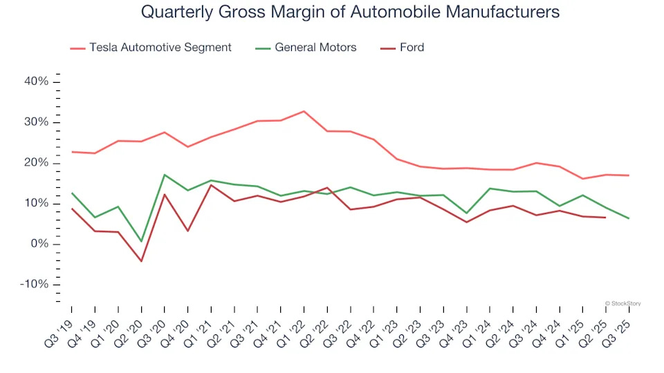على مدى خمس سنوات، كانت تسلا تمتلك أعلى هوامش ربح في الصناعة بمتوسط 22.4% في قطاع السيارات، مقابل 10–12% لمنافسيها، لكن هذه الفجوة بدأت تضيق مع ضغط الأسعار والتكاليف.