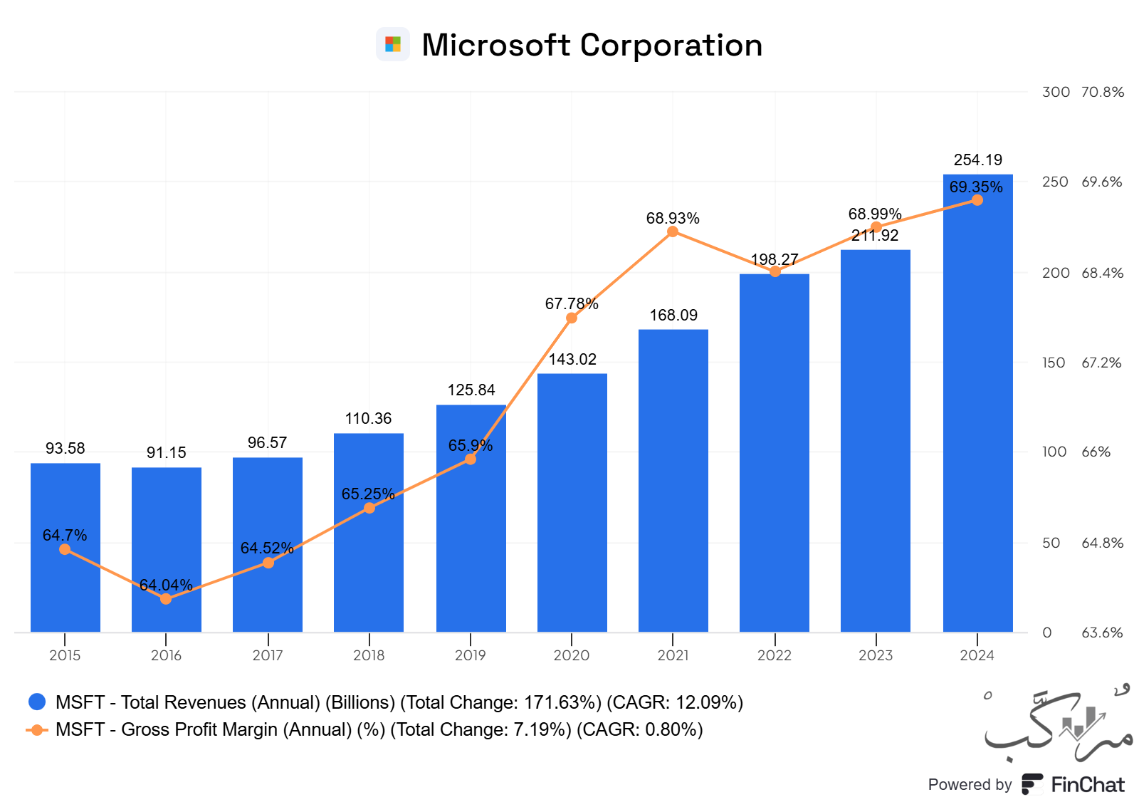 مايكروسوفت تستفيد من نمو الطلب على خدمات الحوسبة السحابية، بالإضافة إلى قاعدة عملائها الواسعة التي تعتمد على منتجاتها البرمجية الأساسية.