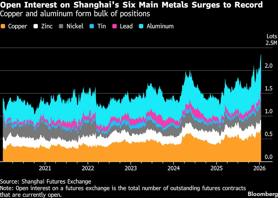• أحجام التداول في بورصة شنغهاي (Shanghai Futures Exchange) وصلت إلى مستويات قياسية.