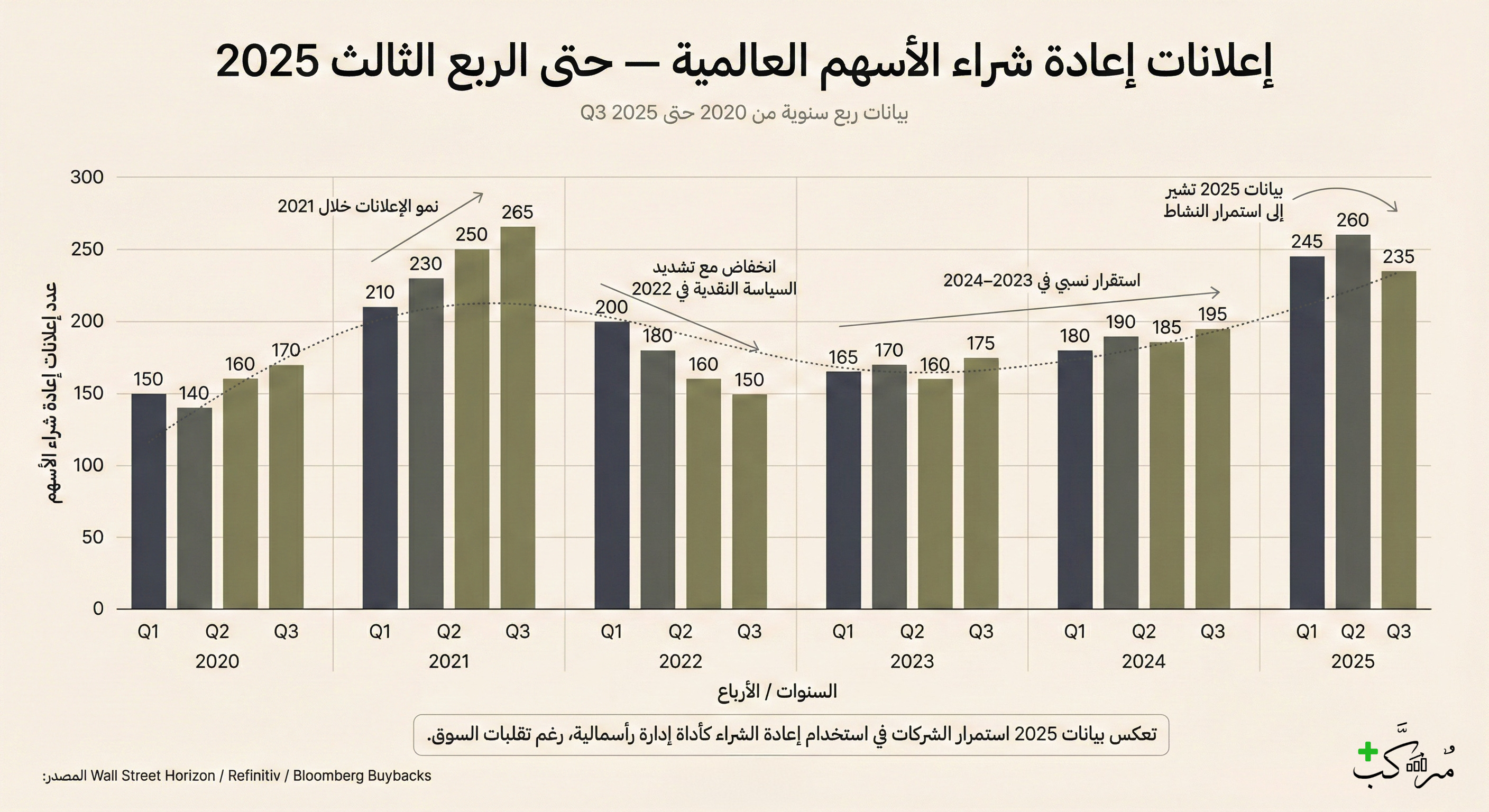 هناك إجماع واسع أن 2025 شهد موجة Buybacks قوية جدًا، وبعض المصادر توقعت تجاوز 1.1 تريليون دولار.