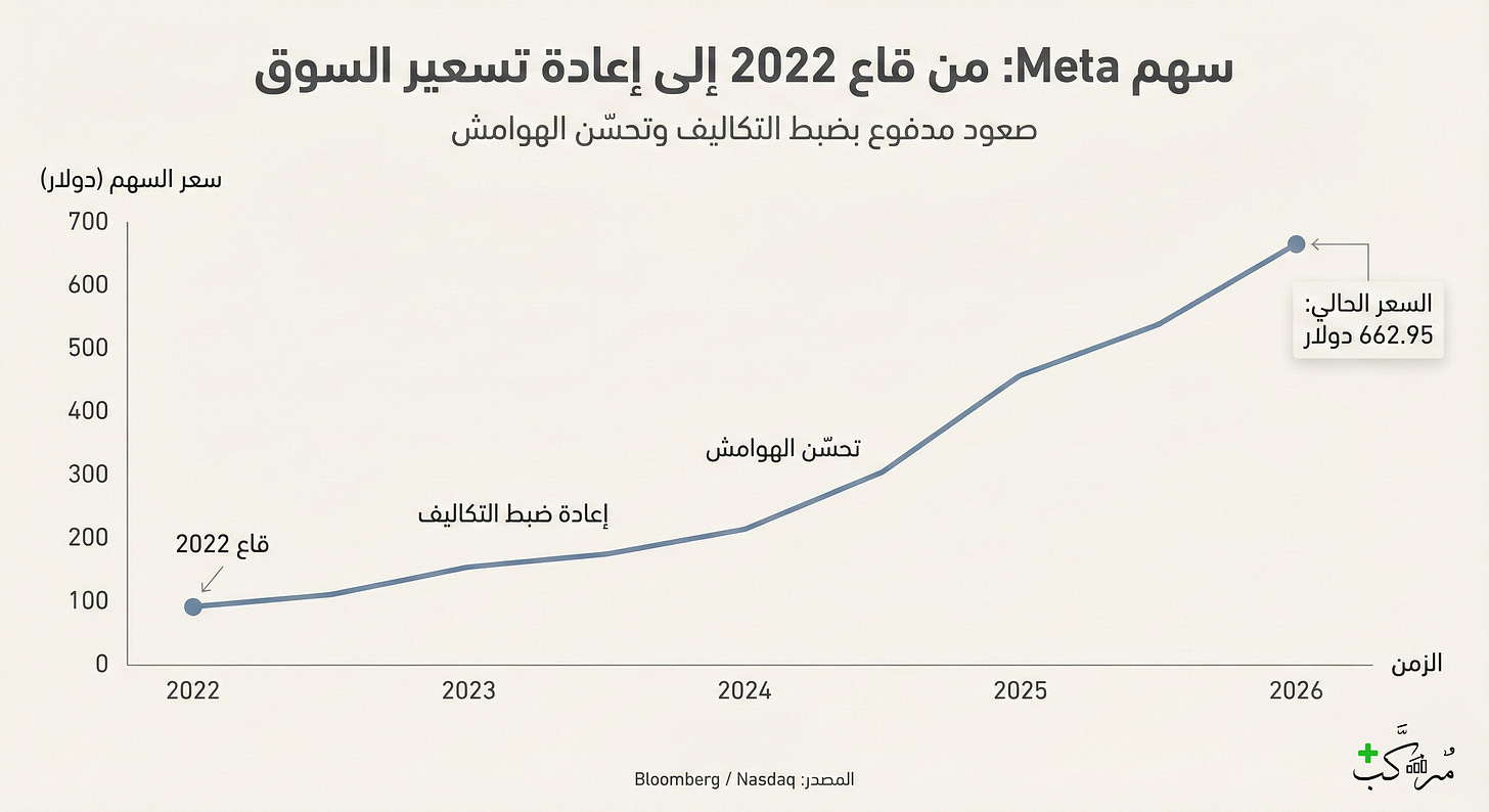 Meta هي من الشركات الكبيرة التي لم تقم بعمل split تاريخيًا، ومع ارتفاع السعر يصبح الأمر أقرب للحدوث في 2026 حسب تحليلات متعددة.