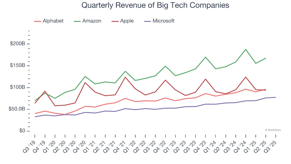 • نمو الإيرادات خلال خمس سنوات بلغ 14.8% سنويًا، متفوقة على آبل (Apple) وأمازون (Amazon)، ومقتربة من غوغل (Google – GOOGL).