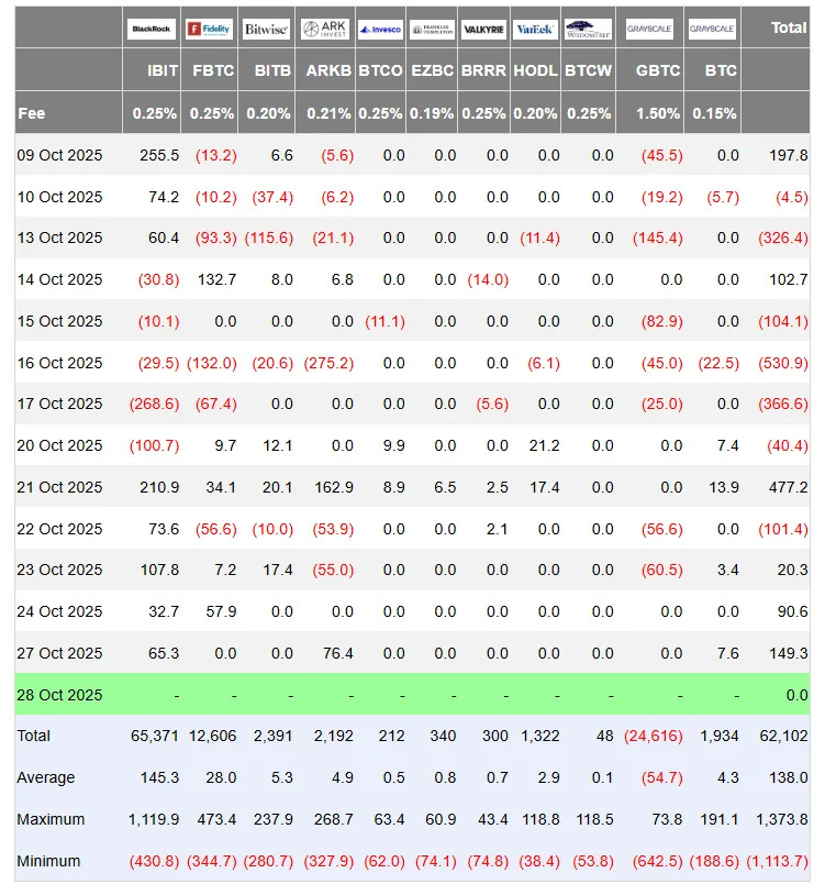 تُظهر بيانات Coinglass أن بيتكوين ارتفعت بنسبة +1.14% منذ بداية الشهر، بعدما تجاوزت 123,000$ مطلع أكتوبر، قبل أن تهبط إلى 107,000$ منتصف الشهر، تصحيح نسبته 13% محا مكاسب أسابيع خلال أيام قليلة.