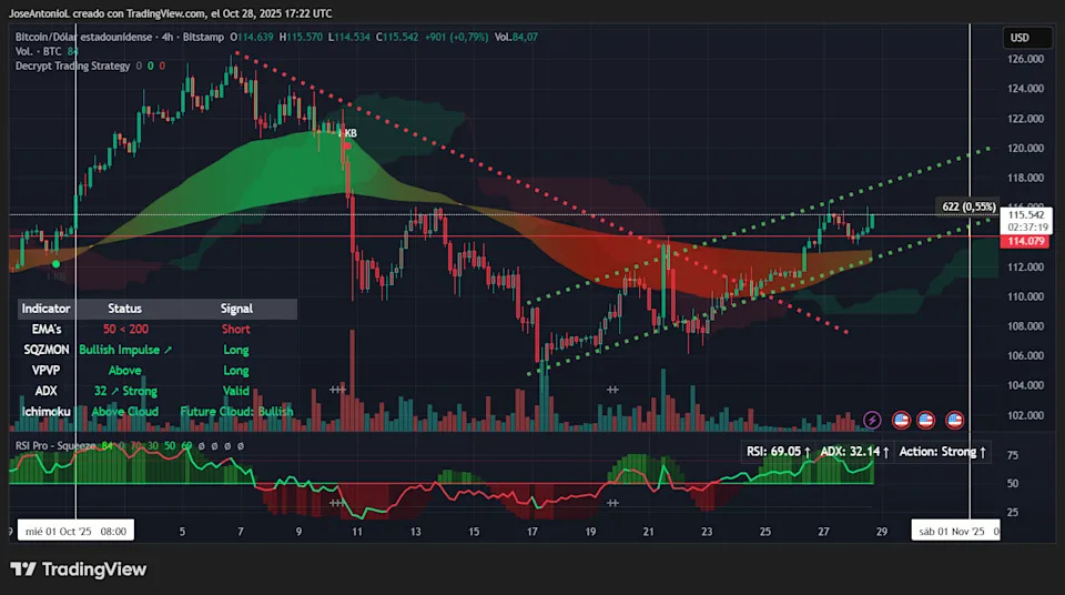 🔮 نظرة مُركّب: المؤشرات الفنية متفقة على أن مسار بيتكوين قصير الأجل يميل إلى الثبات أو الارتفاع البسيط، لا الانكسار.