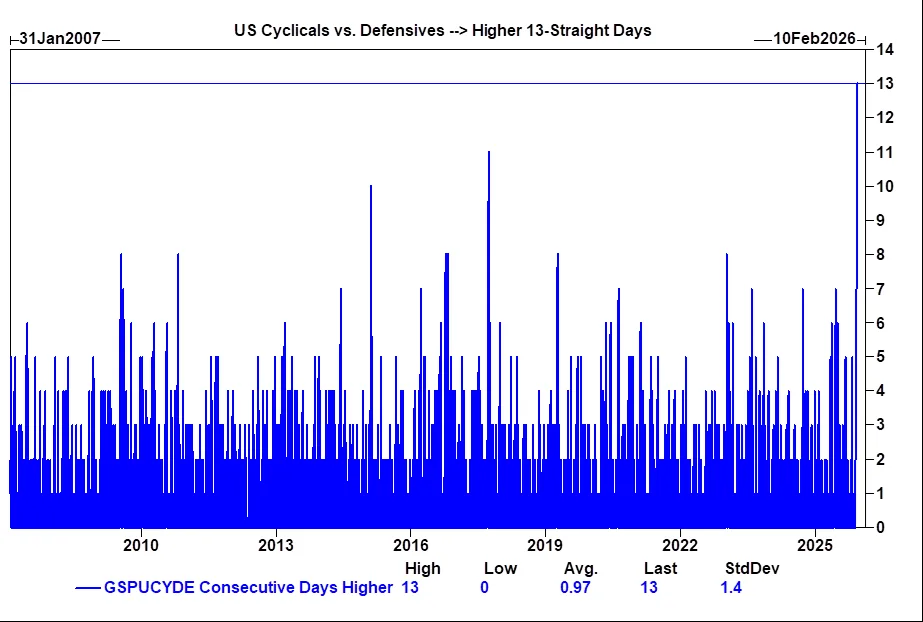 • الصعود 13 يومًا متتاليًا—أطول سلسلة في التاريخ
