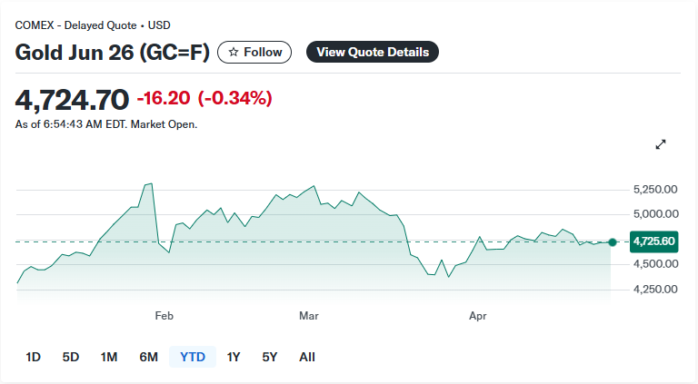 • الذهب (Gold – GC=F) يفتتح عند 4,713$