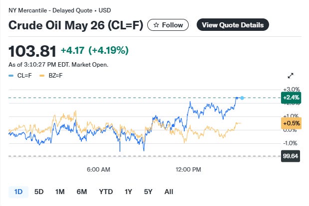 • خام غرب تكساس (West Texas – CL=F) فوق 103