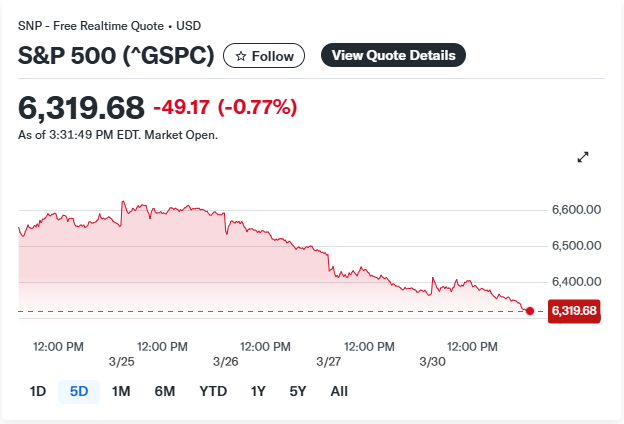 • مؤشر S&P 500 (^GSPC) تراجع بنحو 0.3%