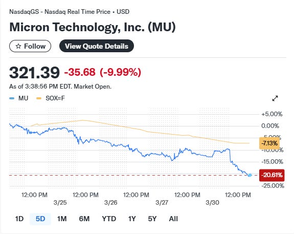 • ميكرون (Micron – MU) هبطت بأكثر من 10%