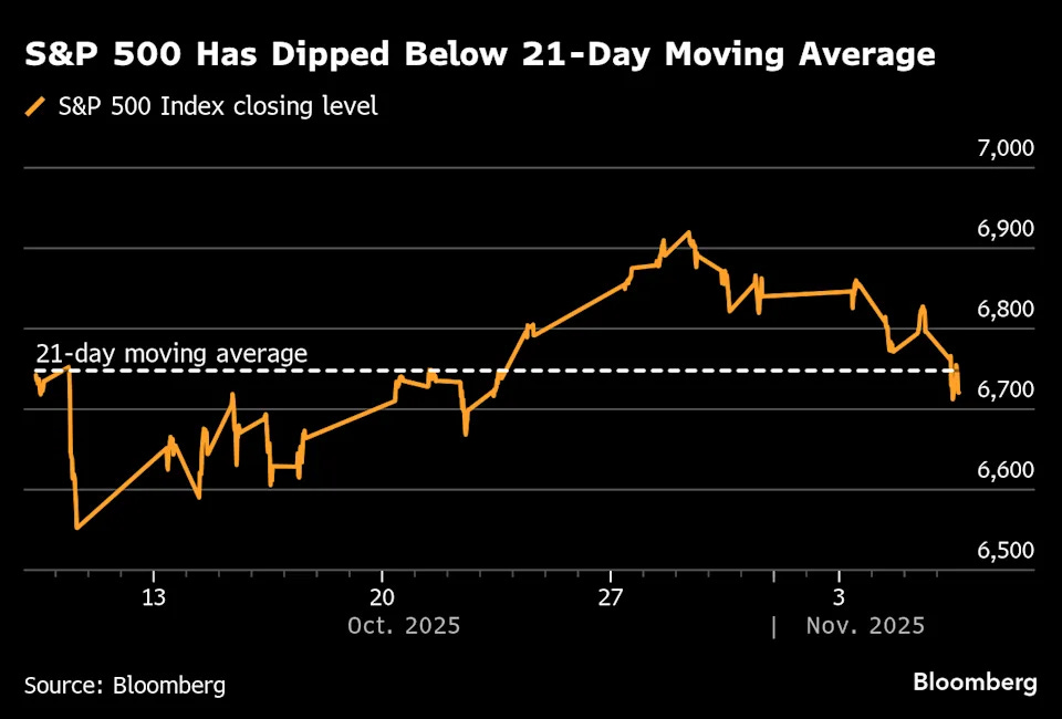 مما دفع مؤشر S&P 500 للهبوط إلى 6,720.32 نقطة، أدنى مستوى في أسبوعين، وسط ترقب لتفاعل الأسواق مع مستويات دعم حرجة يراقبها المحللون الفنيون.