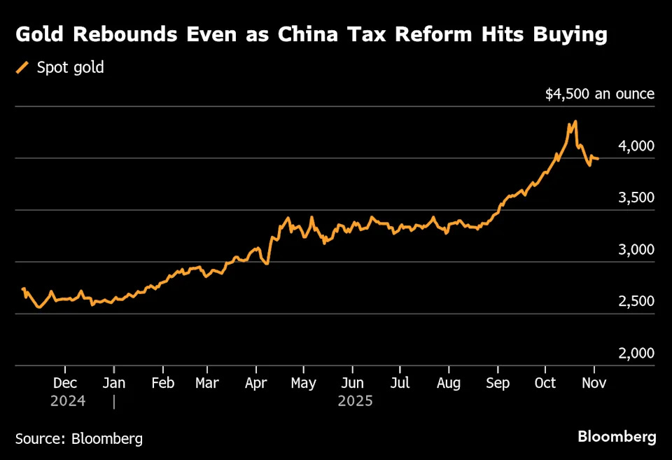 🔥 الذهب يستقر قرب 4,000 دولار للأونصة بعد إلغاء الصين لحوافز ضريبية رئيسية