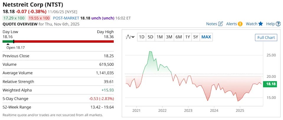 🏢 4. شركة نتستريت (Netstreit Corp - NTST)
