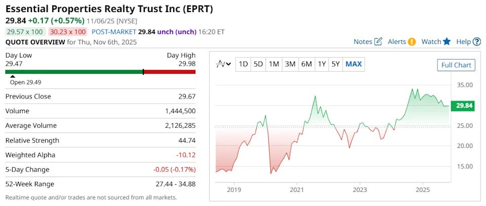 🏠 5. شركة إسنشال بروبرتيز رياليتي ترست (Essential Properties Realty Trust - EPRT)