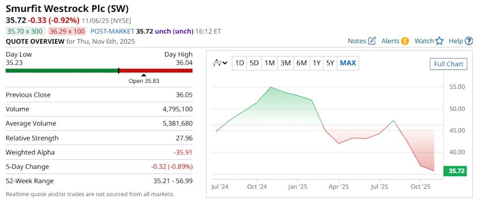📦 3. شركة سمرفيت ويستروك (Smurfit Westrock Plc - SW)