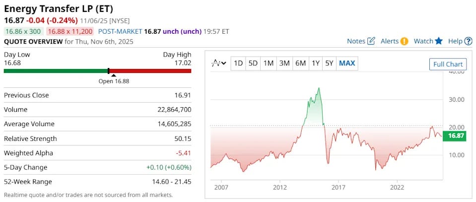 💧 1. شركة إنرجي ترانسفر (Energy Transfer LP - ET)