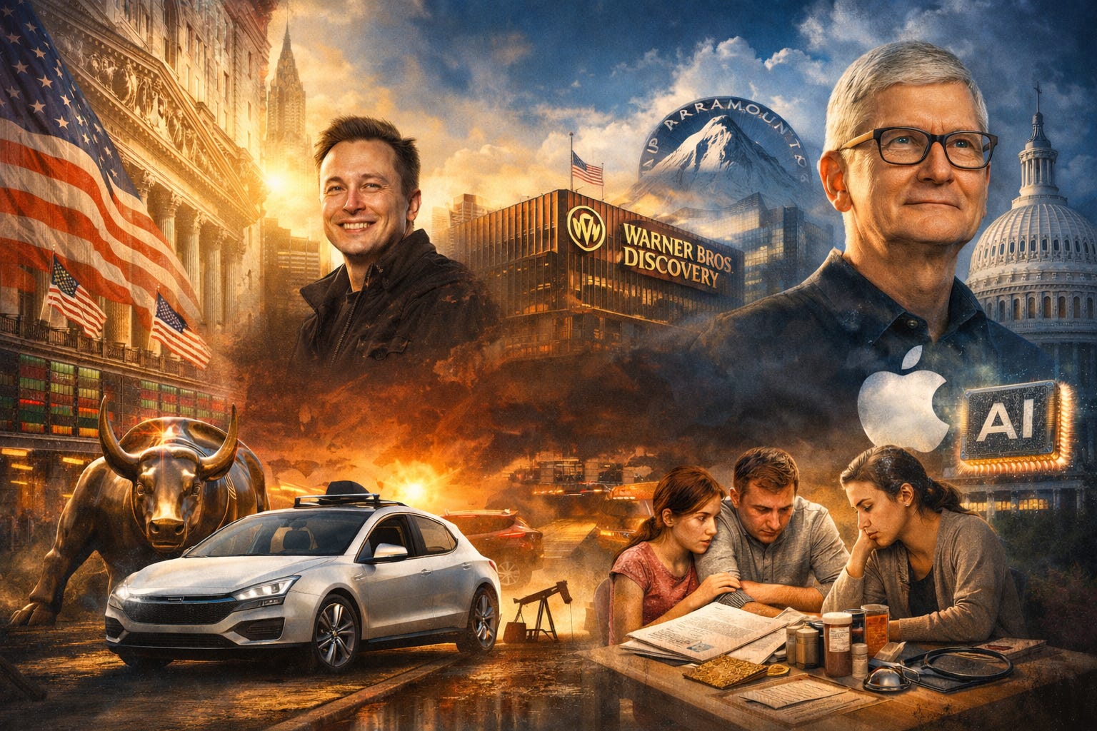 تدخل وول ستريت جلسة اليوم على إيقاع متوازن ظاهريًا، لكنه يخفي طبقات من التوتر الكامن، بين بيانات وظائف متأخرة تعيد خلط أوراق الفيدرالي، وقفزة تسلا (Tesla – TSLA) إلى قمم تاريخية، وصراع استحواذ محتدم في قطاع الإعلام، وضغوط سياسية واجتماعية تقترب من نقطة الغليان، فيما تستعد أبل (Apple – AAPL) لمرحلة مفصلية في سباق الذكاء الاصطناعي.