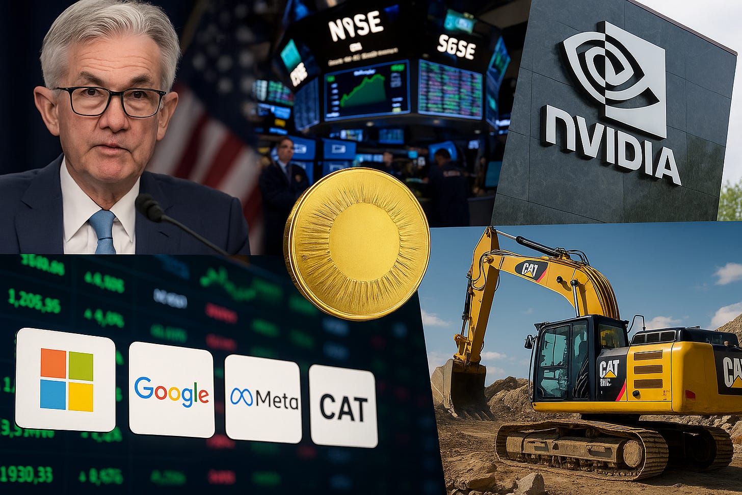 يترقب المستثمرون اليوم قرار الاحتياطي الفيدرالي (Federal Reserve) بشأن أسعارالفائدة، بينما تواصل أنفيديا (Nvidia) صعودها المذهل بعد سلسلة من الإعلانات الكبرى، في حين تستعد مايكروسوفت (Microsoft) وغوغل (Google) وميتا (Meta) لإعلان نتائجها الفصلية مساءً. كما ارتفع سهم كاتربيلر (Caterpillar) بعد تقرير أرباح قوي فاق التوقعات.