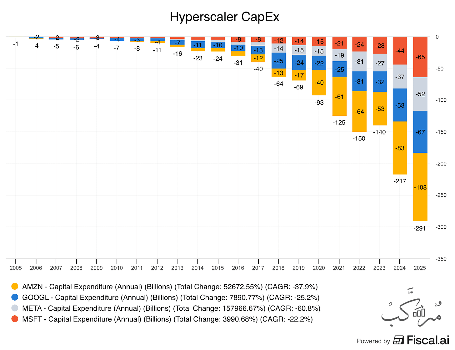الإنفاق الرأسمالي للشركات الأربع الكبرى (أمازون، مايكروسوفت، غوغل، ميتا) يتجاوز 300 مليار دولار سنويًا — وقود سباق الذكاء الاصطناعي العالمي.