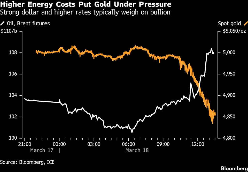 شهدت أسعار الذهب تراجعًا حادًا مع تصاعد التوترات في الشرق الأوسط وارتفاع أسعار الطاقة، ما أعاد رسم توقعات السياسة النقدية وأضعف جاذبية المعدن كملاذ آمن على المدى القصير.