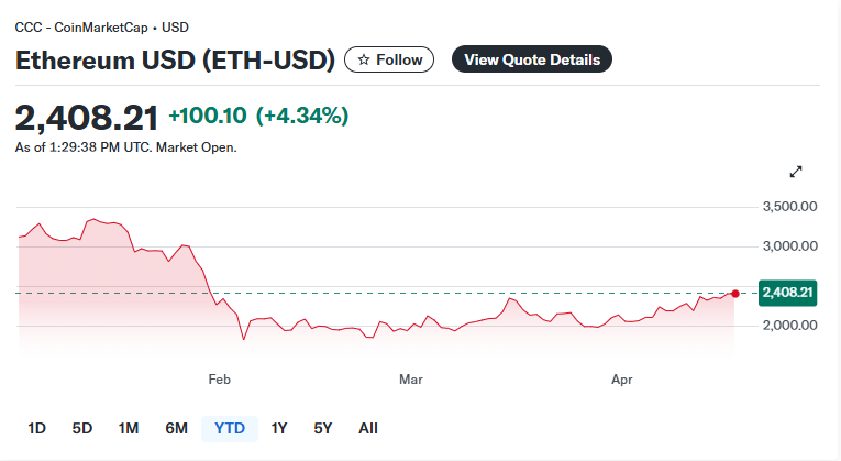 • إيثيريوم (Ethereum – ETH-USD) افتتح عند $2,348