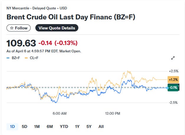 خام برنت (Brent – BZ=F) حول $109