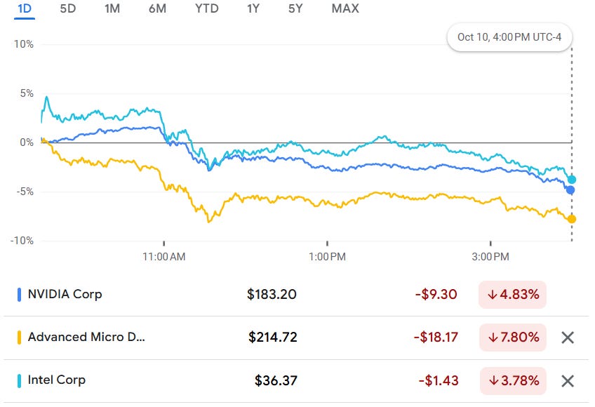 أسهم الرقائق مثل Nvidia و AMD و Intel كانت من أكبر الخاسرين، وسط مخاوف من اضطراب سلاسل الإمداد.