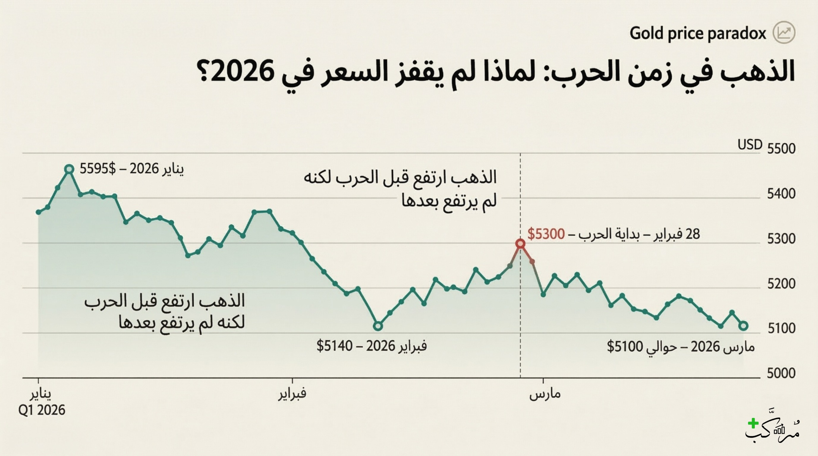 عدم ارتفاع الذهب في حرب 2026 لا يعني أن الذهب فقد دوره.