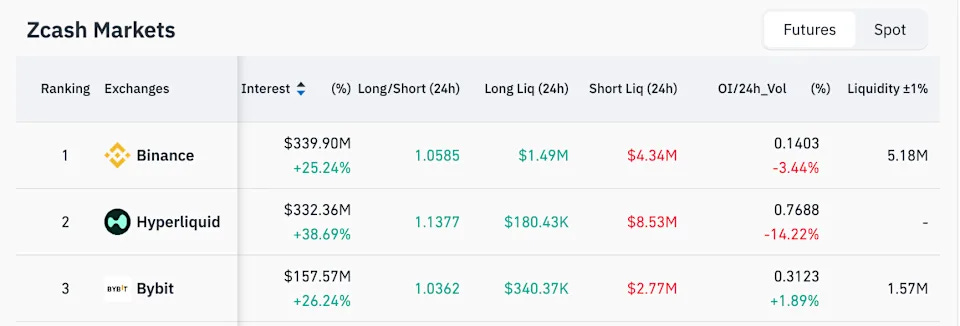 ارتفع حجم التداول اليومي إلى 1.8 مليار دولار، فيما بلغت مراكز العقود الآجلة المفتوحة في Binance نحو 340 مليون دولار، متبوعة بـ Hyperliquid و Bybit.
