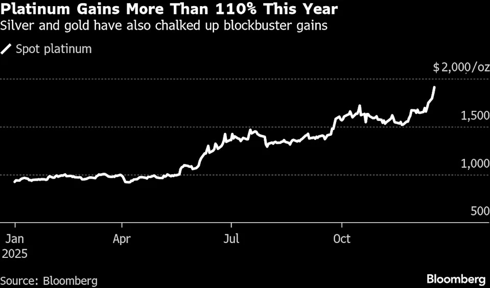 وفي الطرف الآخر، الذهب والبلاتين يقتربان من مستويات تاريخية مدعومين بتباطؤ التضخم، خفض الفائدة، وتصاعد التوترات الجيوسياسية.