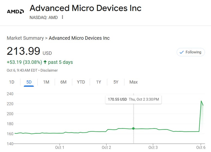 🚀 سهم AMD يقفز أكثر من 35% بعد صفقة تاريخية مع OpenAI