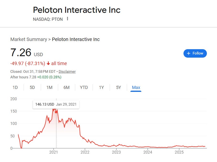 مثل شركة Peloton التي انتقلت من نموّ خرافي إلى خسائر متراكمة بعد الجائحة.
