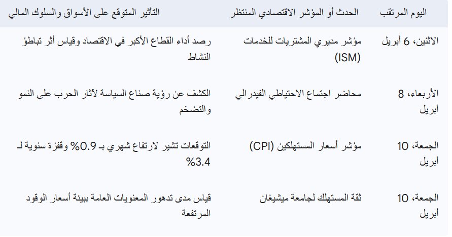 ينتظر المستثمرون في الأسبوع القادم حزمة من البيانات الماكرو-اقتصادية ذات الوزن الثقيل، والتي ستكون بمثابة المحك الحقيقي لقياس مسار التضخم ولتحديد التوجهات القادمة للسياسة النقدية الأمريكية والدولية على حد سواء. إن التركيز الأساسي للأسواق والمؤسسات المالية سينصب بلا شك على قراءة مؤشر أسعار المستهلكين لشهر مارس، والذي يتوقع له أن يحمل أرقاماً تعكس بوضوح أثر صدمة الطاقة الحالية على تكلفة السلع والخدمات الأساسية.