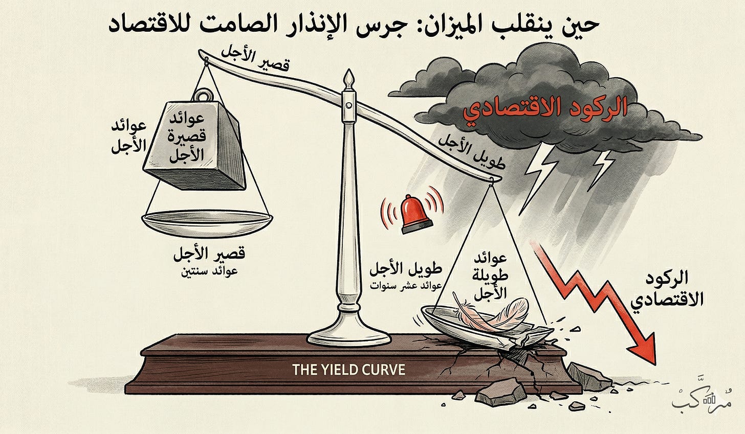 لكن ما يحدث الآن في الأسواق غريب جداً: الكبار الذين يُسلفون أموالهم للحكومة (عبر أوراق تسمى السندات)، يطلبون مكافأة وفائدة أكبر على إعارة أموالهم للوقت القصير (مثل 3 أشهر) مقارنة بالوقت الطويل (مثل 10 سنوات). هذا الشيء العكسي والغريب يسميه الخبراء “انقلاب منحنى العائد”.