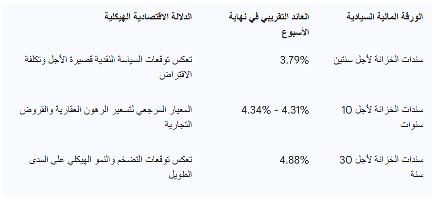ارتفع العائد على سندات الخزانة لأجل عشر سنوات ليصل إلى قرابة 4.48% بالمائة في ذروة الصعود، قبل أن يتراجع نسبياً ليستقر حول 4.31% أو 4.34% مع نهاية الأسبوع. ويمثل هذا السلوك انكساراً واضحاً للتوقعات التي سادت بين المحللين في مطلع العام بكون مستويات العائد دون 4% ستكون هي المعيار السائد لعام 2026، مما أثبت عدم واقعية تلك الفرضيات في ظل الصدمات الجيوسياسية.