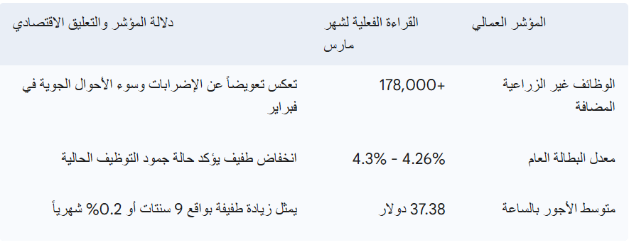 إن استقرار نمو الأجور السنوي عند ثلاثة فاصلة خمسة بالمائة يمنح الاحتياطي الفيدرالي إشارة إيجابية نسبية، كونه يتناغم مع مستهدف التضخم البالغ اثنين بالمائة على المدى الطويل. ومع ذلك، فإن المحللين يحذرون من أن الأثر الكامل لارتفاع أسعار النفط والطاقة ربما لم يظهر بعد في بيانات التوظيف الحالية التي تعود لشهر مارس، وقد يبدأ في الضغط الفعلي على القوة الشرائية للمستهلكين والطلب الكلي على العمالة في النصف الثاني من العام.
