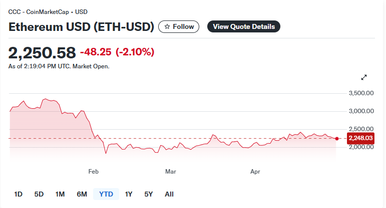 • الإيثريوم (Ethereum – ETH-USD) عند 2,250.58$