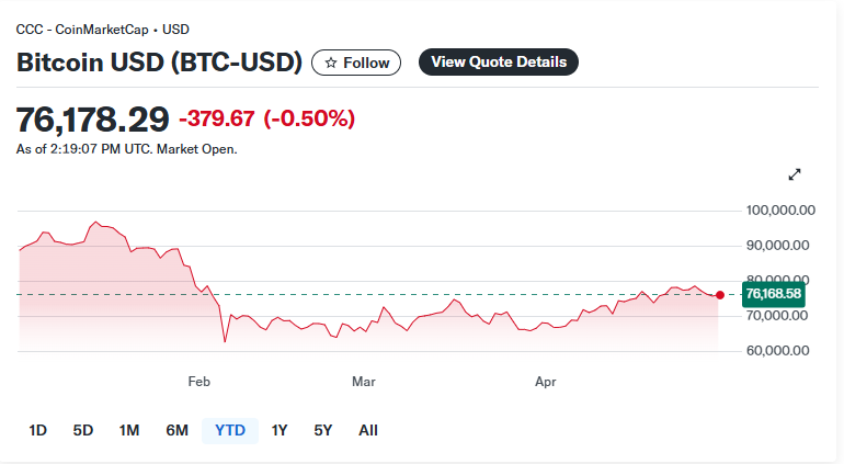 • البيتكوين (Bitcoin – BTC-USD) عند 76,178.29$