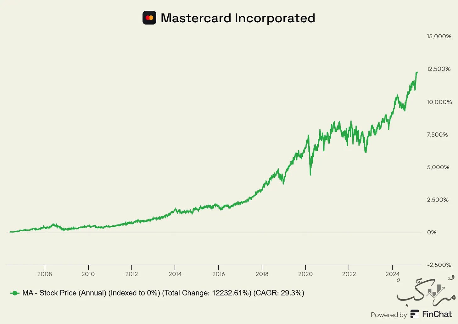 تُعتبر Mastercard العمود الفقري للبنية التحتية للمدفوعات الإلكترونية العالمية، إذ تستفيد من التحول الرقمي الذي يشهده العالم وتحقق إيرادات ثابتة من رسوم المعاملات عبر البطاقات الائتمانية والخصم والمدفوعات عبر الهواتف المحمولة.